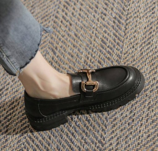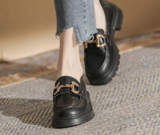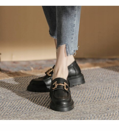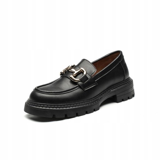CZARNE SKÓRZANE MOKASYNY DAMSKIE GRUBA PODESZWA