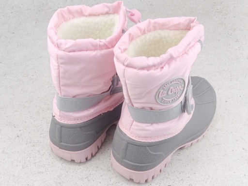 Śniegowce dziecięce Lee Cooper zapinane na rzep to idealne rozwiązanie dla najmłodszych w chłodne dni. Dolna część k ozaczków jest wykonana z gumy. Ocieplana wkładka o miękkiej i przyjemnej fakturze doskonale izoluje od zimna i wilgoci. Buty ocieplone zostały ciepłym polarem.