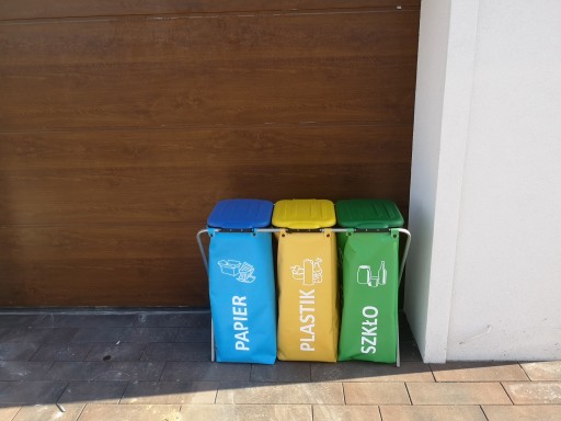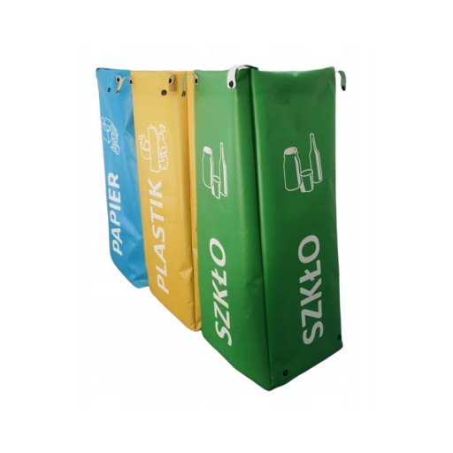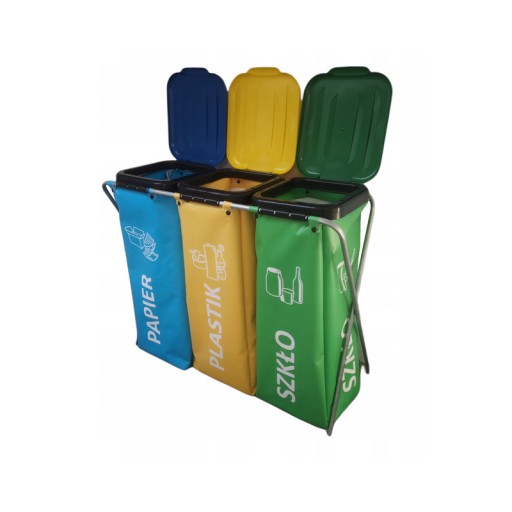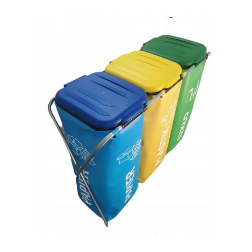 Przykrywki w trzech kolorach wykonane tworzywa sztucznego - Kolory przykrywek są w kolorach worków (zielony, niebieski, żółty)
