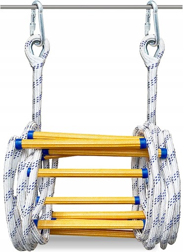 - Kompaktowy i przenośny – dzięki kompaktowej konstrukcji i lekkiej konstrukcji można go łatwo przenosić lub schować pod łóżkiem, w szafie lub powiesić przy oknie bez zajmowania zbyt dużej przestrzeni. Ten rodzaj drabiny ratunkowej jest łatwy w użyciu dla dorosłych i dzieci, a także lekki, nawet dzieci mogą ją łatwo nosić.