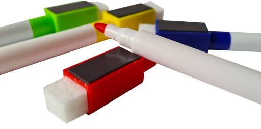 Z boku zatyczki jest magnes, dzięki niemu pisaki nie zostaną zgubione, a przyczepione do tablicy.