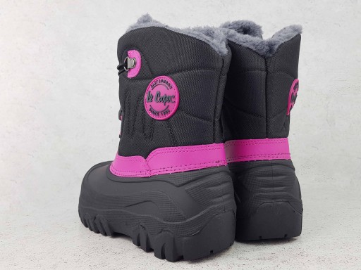 Śniegowce dziecięce Lee Cooper to idealne rozwiązanie dla najmłodszych w chłodne dni. Dolna część kozaczków jest wykonana z gumy. Ocieplana wkładka o miękkiej i przyjemnej fakturze doskonale izoluje od zimna i wilgoci. Buty ocieplone zostały ciepłym polarem.