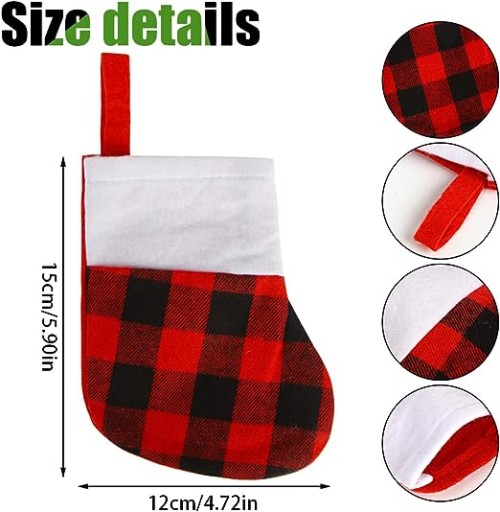 - Rozmiar: Mała świąteczna skarpeta ma wymiary 14,5 x 13 cm i ma mankiety z białej tkaniny, które można łatwo wypełnić drobnymi cukierkami, czekoladkami, prezentami, zabawkami i tak dalej.