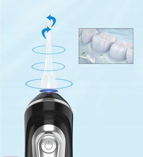 Dysza obrotowa 360°, z grawitacyjnym odsysaniem kulowym, pozwala na natryskiwanie pod dowolnym kątem z płynnym wchłanianiem wody, może również skupić się na czyszczeniu bruzd, zębów mądrości, bez martwych punktów do czyszczenia jamy ustnej!