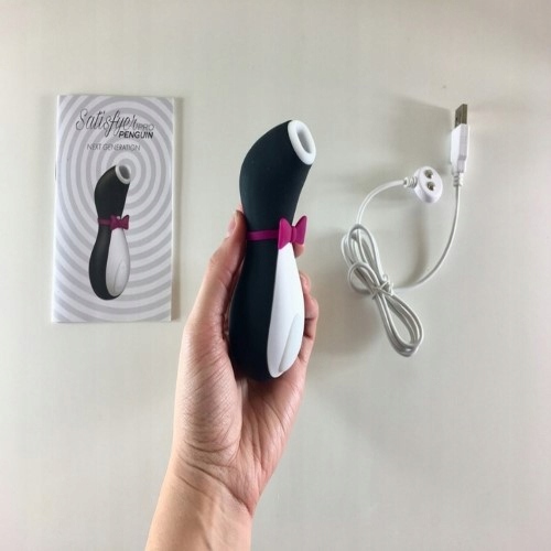 Masażer PINGWINEK wystrojony w elegancki smoking łączy w sobie rewolucyjną technologię fal ciśnienia przypominających efekt ssania z urzekającym i kobiecym designem.