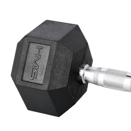 HEX PRO HMS - gumowane hantle sześciokątne. Treningi przy użyciu hantli z rodziny HEX PRO HMS pozwalają na powielanie niemal wszystkich rodzajów ćwiczeń, które wykonywane są ze sztangą. Jednocześnie dają możliwość pracy asymetrycznej - przy użyciu tylko jednego ramienia. Gumowane hantle są odporne na uderzenia, posiadają ergonomiczny kształt. Z kolei pewny uścisk gwarantuje radełkowana rączka. Hantle HEX PRO dostępne są w wielu wersjach wagowych, dzięki czemu są idealnym rozwiązaniem zarówno dla osób, które dopiero zaczynają swoją przygodę z treningiem siłowym, jak i dla tych bardziej zaawansowanych.