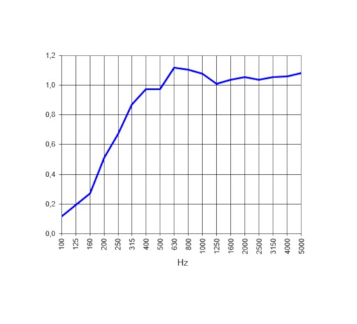 Obok przedstawiamy laboratoryjny wykres z badania pochłaniania dźwięku (nie jest to symulacja) wg normy EN ISO 354, EN 1793-1.