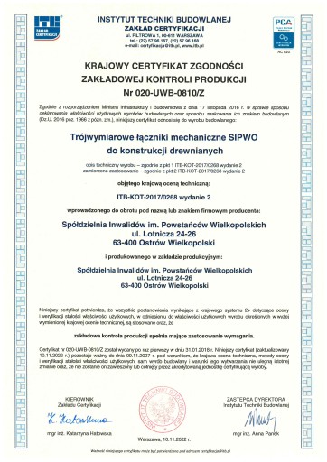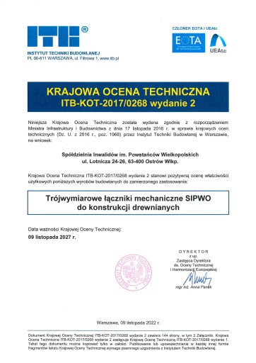 Kątownik posiada niezbędne dokumenty dopuszczające do użycia w budownictwie (Krajowa Ocena Techniczna).