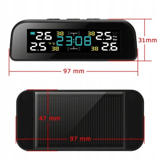 Ten monitor ciśnienia w oponach może wyświetlać cztery ciśnienia w oponach w czasie rzeczywistym, pomagać użytkownikom monitorować stan opon na czas, zwiększać bezpieczeństwo jazdy i ma funkcję zegara, która jest odpowiednia dla różnych modeli.
