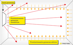 Promieniowanie podczerwone nie powoduje wprawdzie bezpośredniego ogrzewania powietrza, lecz ogrzewa wszystkie znajdujące się we wnętrzu przedmioty. Oddawanie przyjętej energii cieplnej przez te przedmioty powoduje podobny efekt, jak działanie pieca kaflowego.