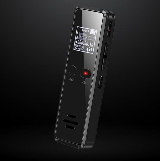 dzięki dwóm profesjonalnym mikrofonom nagrywającym dyktafon może nagrywać wyraźnie. Dzięki funkcji automatycznego rozpoznawania głosu dyktafon automatycznie rozpoczyna nagrywanie po wykryciu dźwięku. Bez dźwięku znajduje się w trybie gotowości, aby zmniejszyć pojemność nagrywania i zużycie energii. Nagrany taniec może osiągnąć nawet 10 m.