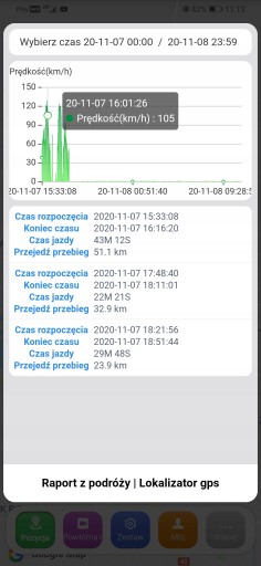 ⭐ Podgląd pokonanej trasy, prędkość, przebieg, czas parkowania itp.