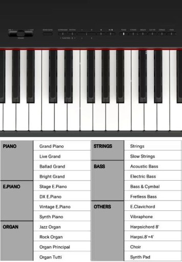 Pianino oferuje 24 brzmień i wiele funkcji: