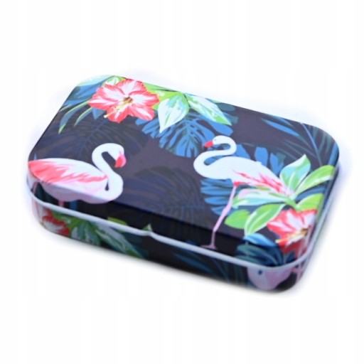 Ozdobne pudełko z kolorowymi flamingami - idealny sposób na przechowywanie różnego rodzaju drobiazgów lub jako mini pojemnik prezentowy.