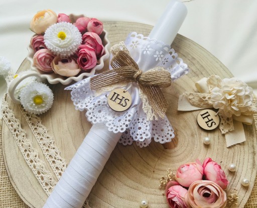 Świeca komunijna świeca do Pierwszej Komunii BOHO + PUDEŁKO
