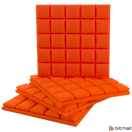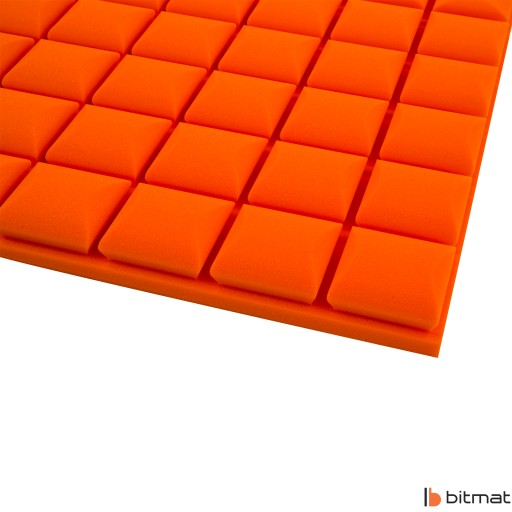 Cena dotyczy 16 sztuk paneli akustycznych Bitmat kostka profilowana bez kleju w kolorze pomarańczowym.
