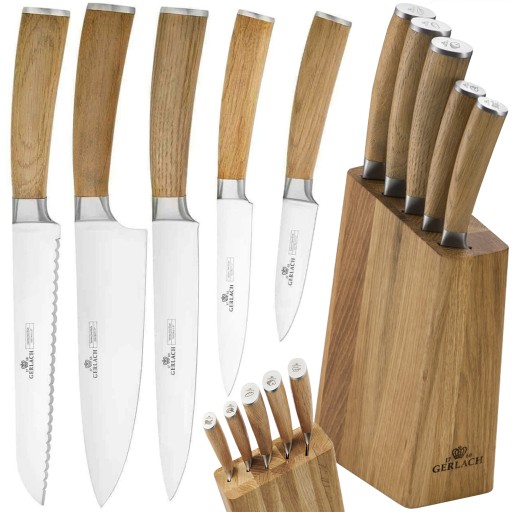 GERLACH ZESTAW 5 NOŻY W DREWNIANYM BLOKU NATUR