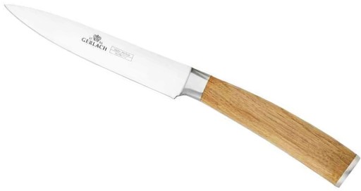 - Twardość ostrzy noży kuchennych Gerlach została tak dostosowana, aby zapewnić niezwykle precyzyjne i ostre cięcie, a jednocześnie zminimalizować prawdopodobieństwo złamania się ostrza podczas intensywnego użytkowania.