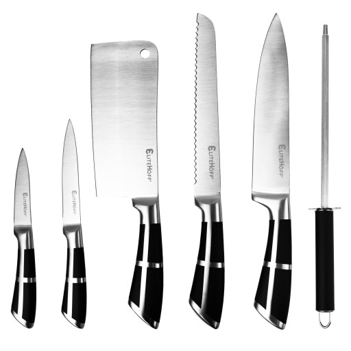 Noże wykonane są z najwyższej jakości stali nierdzewnej. Noże nie wymagają ponownego ostrzenia przez długi czas. Dużo bardziej odporne na uszkodzenia.