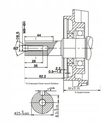 - Średnica wału wynosi 25 mm z jednym rowkiem wpustowym