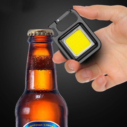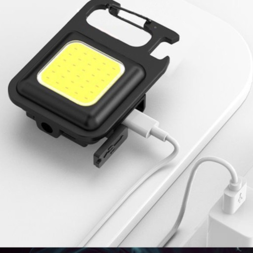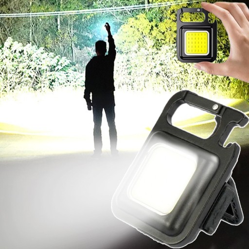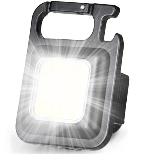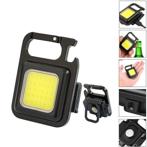 Wielofunkcyjna latarka w formie breloka, charakteryzująca się mobilnością i funkcjonalnością.