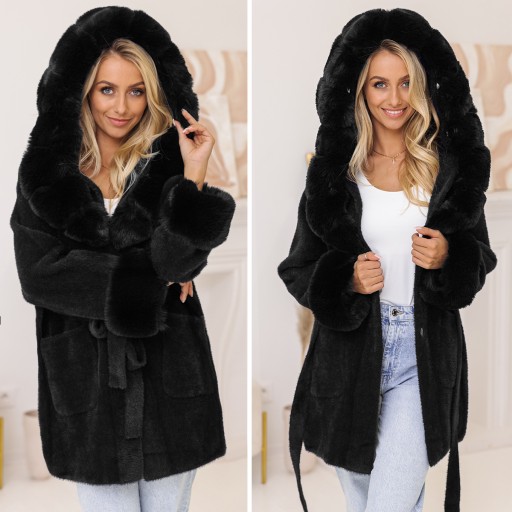 ⭐Na górze kaptur z odpinanym futerkiem.