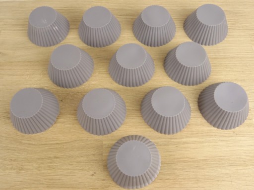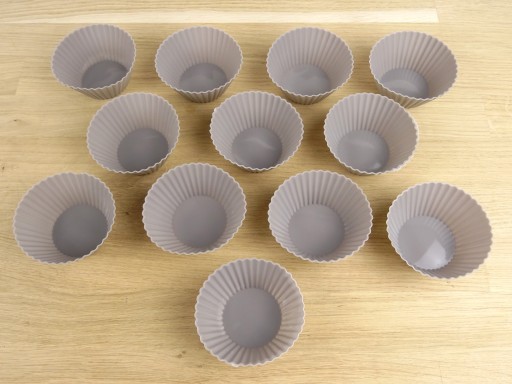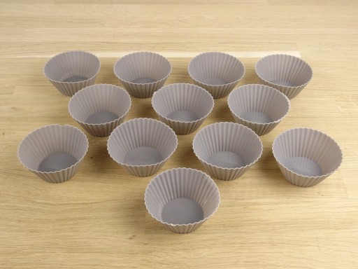 - Zestaw dwunastu foremek do przygotowywania domowych babeczek.