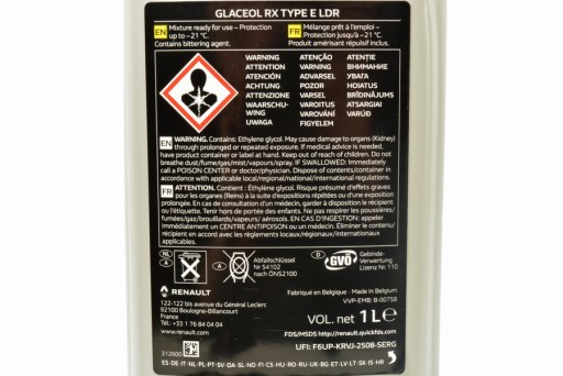ЖИДКОСТЬ ДЛЯ РАДИАТОРА 1л RENAULT GLACEOL RX TYPE D E LDR ОРИГИНАЛ
