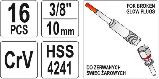 Profesjonalny zestaw marki YATO do demontażu uszkodzonych / urwanych świec żarowych. Pozwala na usunięcie świecy bez zdejmowania głowicy z silnika.