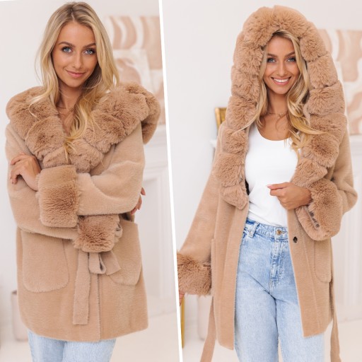 ⭐Na górze kaptur z odpinanym futerkiem.