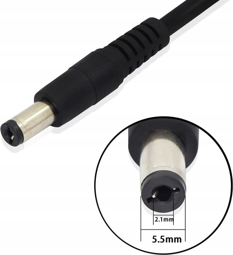 Wtyczka DC: zewnętrzna średnica 5,5 mm (MM); średnica wewnętrzna: 2,1 mm (MM)