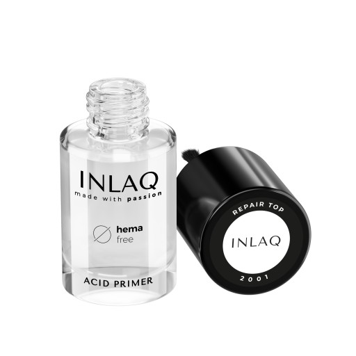 Preparat kwasowy INLAQ, którego zadaniem jest wytrawienie naturalnej płytki i przygotowaniem jej przed zastosowaniem lakierów hybrydowych, żeli oraz akryli.