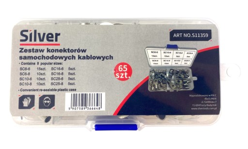 Zestaw konektorów samochodowych w 8 popularnych rozmiarach.