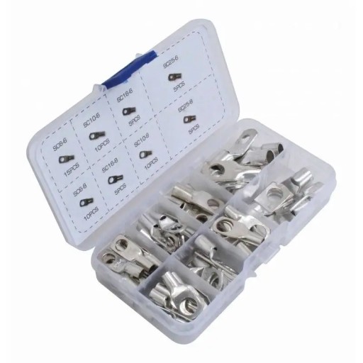 ✅ Zestaw końcówek oczkowych przeznaczonych do zaciskania na przewodach wielodrutowych gwarantują trwałe i solidne połączenie. Zastosowanie m.in. w: samochodach osobowych, ciężarowych, dostawczych, maszynach rolniczych oraz budowlanych oraz wszędzie tam gdzie są stosowane połączenia przewodów z kolejnymi elementami instalacji np. śrubą. Stosowanie konektorów oczkowych zapewnia zwiększoną odporność na drgania mechaniczne oraz zapewnia przed ewentualnym zerwaniem połączenia.