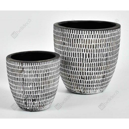 Stylowa osłonka wykonana z kamionki z ciekawym biało-czarnym wzorem.