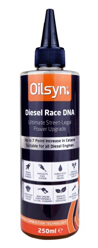 Diesel Race DNA to wyjątkowy koncentrat, który zmienia zwykły olej napędowy w wysokiej jakości wyścigowy olej napędowy, bezpiecznie maksymalizując dostępną moc silnika dzięki połączeniu optymalnej dawki dodatku cetanowego, wysokiej dawki zastrzeżonego smaru estrowego i potężnego katalizatora spalania. Unikalny smar z modyfikatorem tarcia Oilsyn Orisyn na bazie estrów przewyższa konwencjonalne dodatki smarne do paliw silników wysokoprężnych, chroni pompę wysokiego ciśnienia, wtryskiwacze a także parę tłok/cylinder dodatkowo redukując tarcie co ma pozytywny wpływ na spalanie a także odgłosy pracy silnika wysokoprężnego.