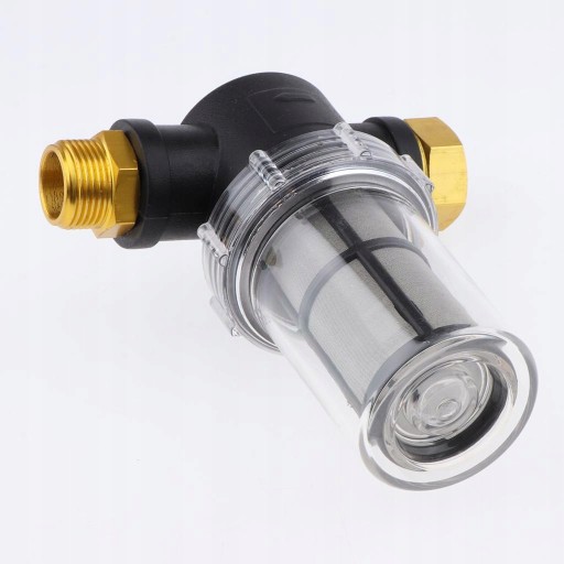 Zaprojektowany do filtrowania wody wypływającej z kranu do węża ogrodowego, aby zapobiec uszkodzeniu pompy myjki ciśnieniowej przez zanieczyszczenia