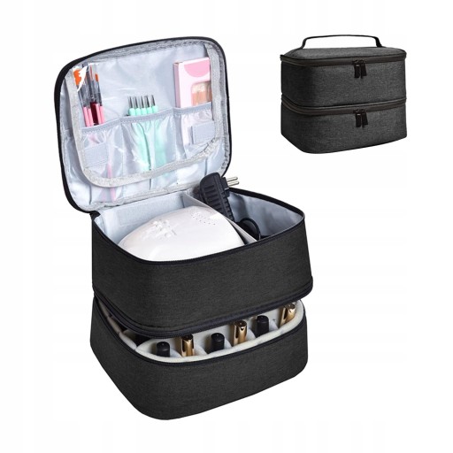 Dwuwarstwowa torba do przechowywania paznokci Organizer Przenośna kosmetyczka Czarna