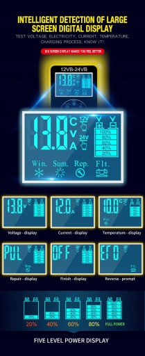Быстрое автомобильное зарядное устройство 12 В/24 В, 12 А, интеллектуальное