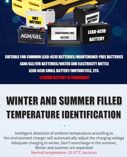 5. Rodzaje akumulatorów: Większość rodzajów akumulatorów kwasowo-ołowiowych, w tym wapniowych, żelowych i AGM, mokrych, EFB itp.