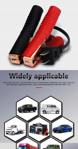 Nadaje się do motocykli 12V 24V (6Ah-200Ah), samochodów, minivanów, sprzętu rolniczego, suchych akumulatorów, akumulatorów wodnych, bezobsługowych akumulatorów kwasowo-ołowiowych, AGM start-stop, akumulatorów żelowych (nie nadaje się do akumulatorów litowych).