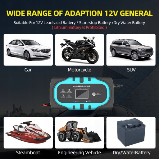 【SZYBKA ŁADOWARKA AKUMULATORÓW】 12-woltowa 10-amperowa szybka ładowarka samochodowa, może ładować lub naprawiać wszystkie 12-woltowe akumulatory kwasowo-ołowiowe, w tym AGM, GEL, SLA, zalane w samochodach, ciężarówkach, suv-ach, motocyklach, kosiarkach, łodziach, itp.