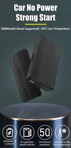 Портативный автомобильный аккумулятор емкостью 20000 мАч для запуска автомобиля от внешнего источника.