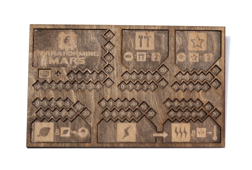 Zestaw 5 solidnie wykonanych obowiązkowych elementów dla każdego gracza Terraformacji Marsa. Produkt w całości wykonany został w Polsce.