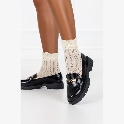 Czarne mokasyny lakierowane damskie ze sprzączką model D23WX3-BP zostały wykonane z wysokogatunkowej lakierowanej skóry ekologicznej co gwarantuje doskonałą jakość, wygodę i dopasowanie do stopy. Mokasyny ze sprzączką to rodzaj obuwia, które łączy w sobie cechy elegancji i wygody. Charakterystyczną cechą tego fasonu jest złota sprzączka umieszczona na cholewce, która pełni funkcję dekoracyjną. Mają niski obcas, co sprawia, że są wygodne i idealne do noszenia na co dzień. Mokasyny są często wybierane jako obuwie do formalnych okazji, takich jak spotkania biznesowe, uroczystości czy wesela. Można je nosić z garniturem, marynarką, spodniami wizytowymi aby stworzyć stylowy i dopasowany look. Szeroki asortyment tego wzoru oferowany w naszym sklepie Casu pomoże Ci dobrać odpowiedni kolor pasujący do każdej Twojej stylizacji.