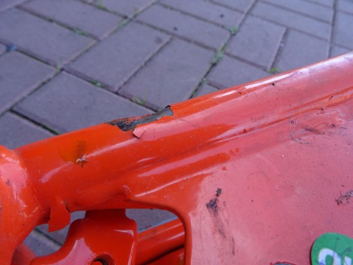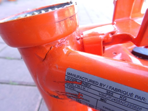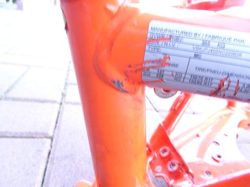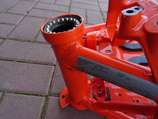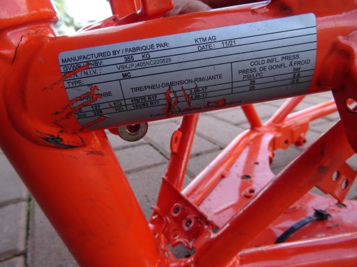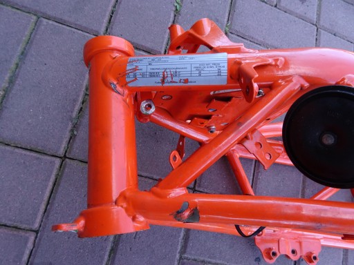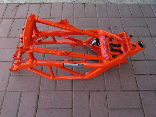 Przedmiotem aukcji jest skrzywiona rama z dokumentacją niemiecką do KTM DUKE 390.
