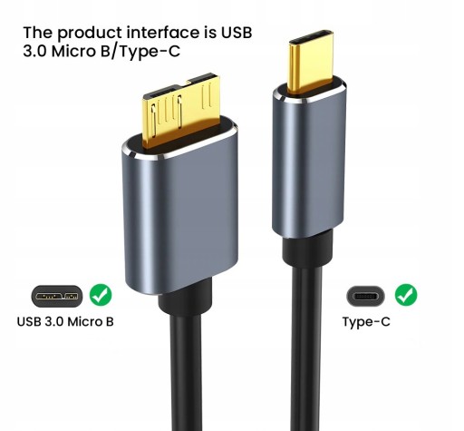 ✅ Pozłacane złącze Micro-B USB 3.0 + złącze USB-C pasujące nowoczesnych dysków zewnętrznych