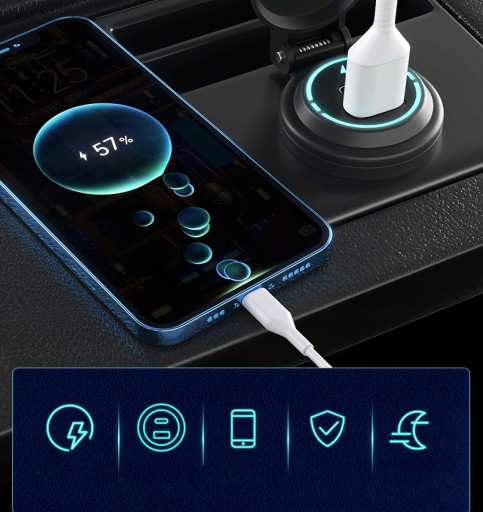 - 1. Produkt posiada port szybkiego ładowania USB PD, a jednocześnie obsługiwane protokoły szybkiego ładowania to: DCP (Apple i BC1.2), Qualcomm QC2.0/QC3.0, protokół szybkiego ładowania Huawei FCP i high -napięciowe SCP, protokół szybkiego ładowania Samsung AFC (MAX 12V), MTK PE 1.1 i MTK PE 2.0 (jeśli sam telefon nie obsługuje szybkiego ładowania, ładowarka nie obsługuje protokołu szybkiego ładowania)
