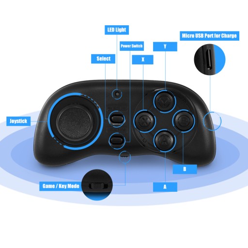 - Wielofunkcyjny: Gamepad, zdalna migawka, mysz Bluetooth, kontroler multimedialny.