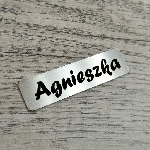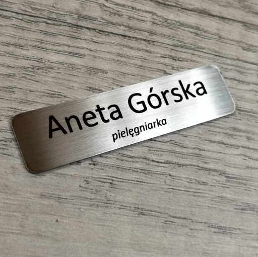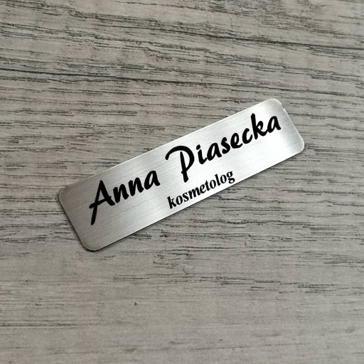 Identyfikator osobowy ze stali nierdzewnej, bardzo elegancki i trwały.